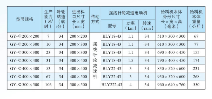 二、全自動包裝秤GY型剛性葉輪式給料機主要技術(shù)參數(shù):