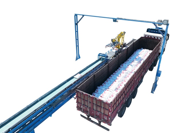 高效裝車(chē):機(jī)械手裝車(chē)機(jī)具有裝車(chē)速度快的特點(diǎn),其裝車(chē)速度可達(dá)800-1100包/小時(shí)(10-100kg)的料袋),且擺放整齊,有效提高了裝車(chē)效率。